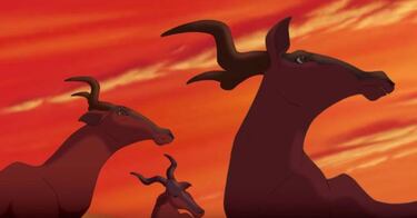 Una de las primeras escenas muestra a los antílopes africanos respondiendo al llamado para la presentación del nuevo heredero de la familia real.